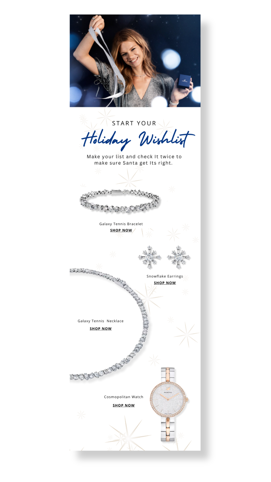 I created this to be a fun project to explore email marketing strategies and web banner designs using one of my favorite brands, Swarovski.